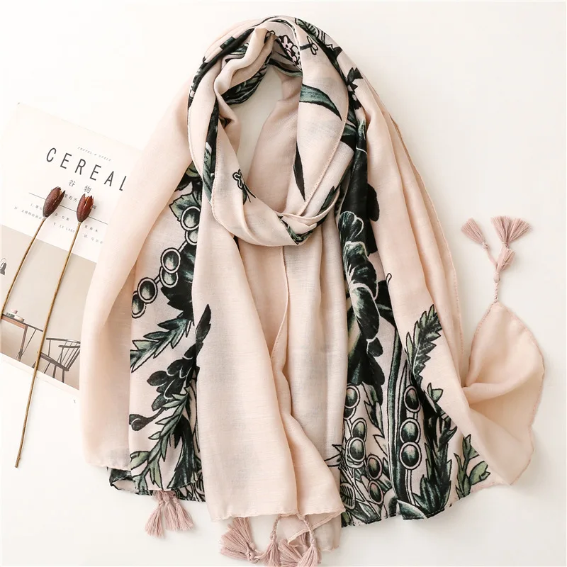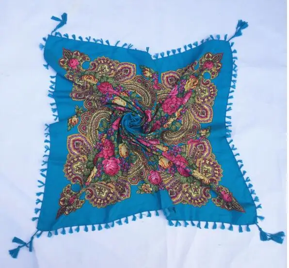 1. Print Sjaal Russische Patroon Kwastje Vierkante Sjaal Vrouwelijke Winter Katoen Aztec Hijab Wrap Hoofd Sjaal 90*90Cm 130G