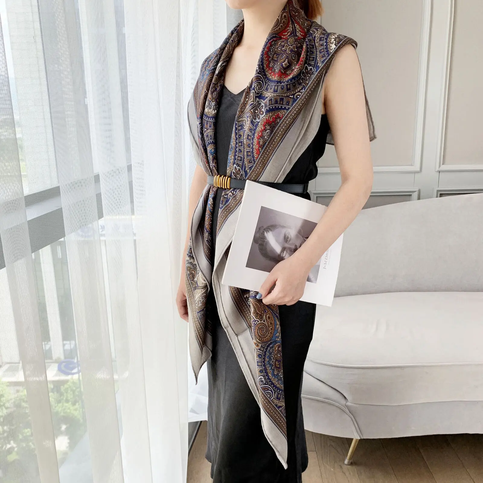- 70% Kasjmier 30% Zijde Sjaal Vrouwen Mode Boho Paisley Sjaal Stola Hoofd Hals Bandana Grote Deken Hoofddoek 135*135cm