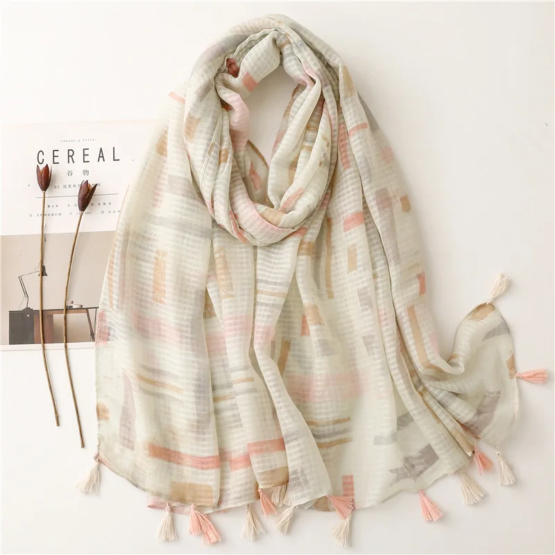 6. 2022 Nieuwe Geometrie Afdrukken Kwastje Sjaal Sjaals Lange Zachte Vrouwen Hoofd Wrap Hijab Sjaals Gratis Verzending