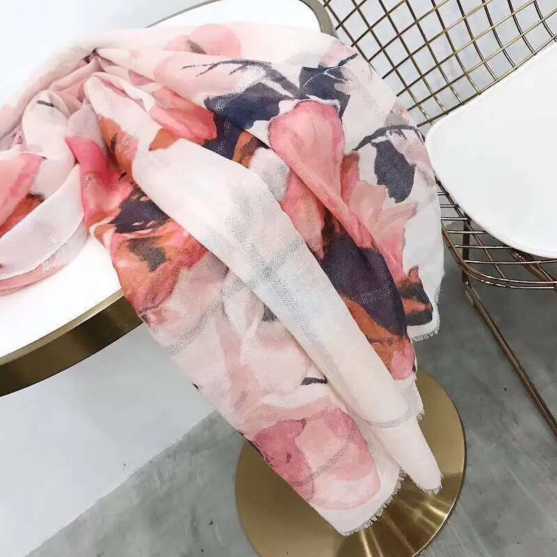 - Lichtgewicht Sjaals Fashion Bloemen Print Vrouwen Katoen Wrap Sjaal Hoofd Sjaal Voor Lente Zomer Hoofdband Bandana Lange Stola